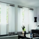 سيبدو التول عضويًا فقط عند اختيار الكورنيش الأيمن.. في المتاجر ، يمكنك رؤية العديد من النماذج المختلفة ، والتي من خلالها تنوع العيون.. لكن ليست كل منهم مريحة وعملية. ستارة صف واحد مناسبة لأولئك الذين قرروا تزيين الغرفة بالتول فقط. إذا كانت الستائر متصلة أيضًا بالنافذة الموجودة على النافذة ، فسيتعين عليك شراء كورنيش متعدد الصفوف. الخيار الأكثر عملية هو الهياكل المتصلة بالسقف. يمكنهم التعامل مع أي وزن تقريبًا.