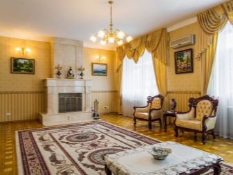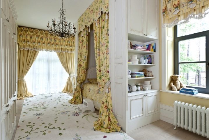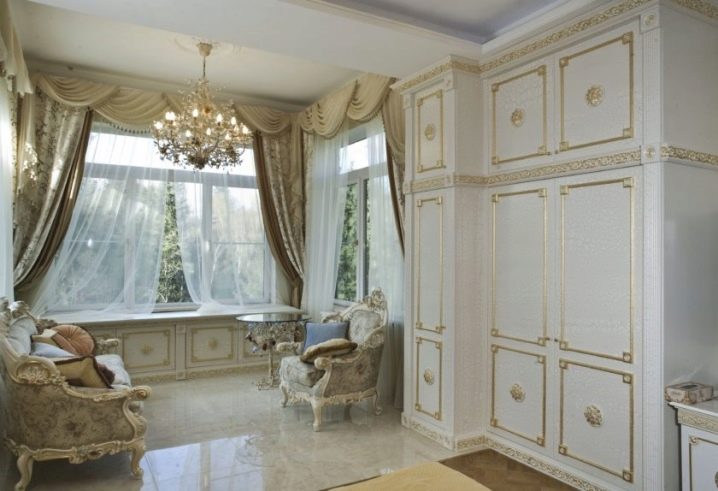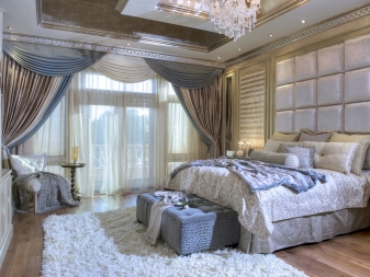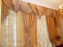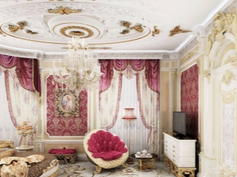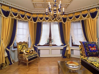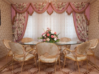 - الباروك يفتح القائمة ، حيث يتم إيلاء الكثير من الاهتمام هنا إلى lambrequins. اختر من أقمشة الحمال ذات الألوان الفاتحة بأهداب مذهبة. مجموعات الهياكل اللينة والصلبة ستبدو جيدة أيضًا..