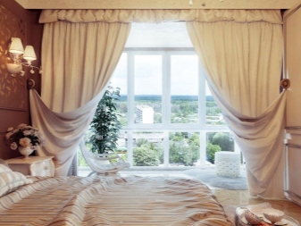 - بالنسبة للنوافذ الكبيرة ، يجب عليك اختيار الإطارات الناعمة فقط ورفض استخدام العصابات الصلبة. من الجيد أن تكون مادة اللمبريكين ذات وجهين: يمكنك استخدام عنصر الجرس الزخرفي الذي يبدو رائعًا مع الهياكل المقوسة.