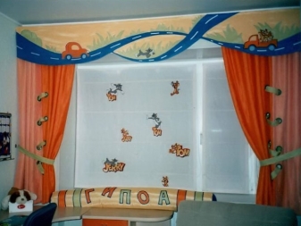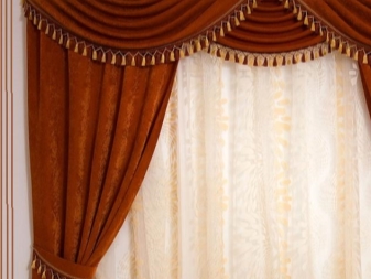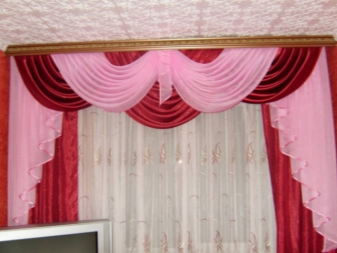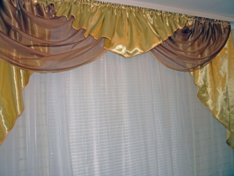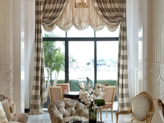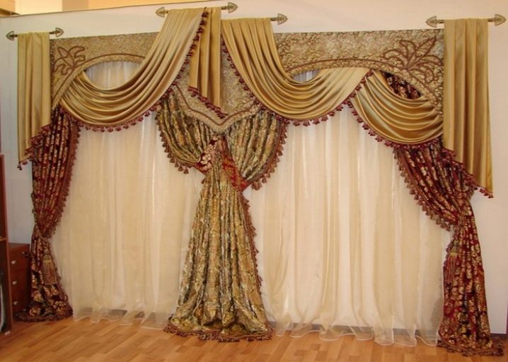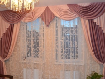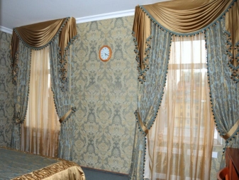 إذا كانت الستائر مصنوعة من قماش بنمط ، فسيكون اختيار مزيج من اللمبريكين الناعم خيارًا مناسبًا. يجب أن تكون Swagas مصنوعة من القماش الكثيف الذي صنعت منه الستارة ومن الحجاب الخفيف الذي تم اختياره ليكون الستارة. تبدو هذه النهاية مناسبة وأنيقة ، بغض النظر عن تركيبة الألوان للعناصر..
