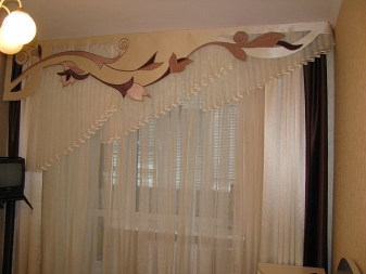 - من الصعب lambrequins بحافة سفلية مستقيمة أو مجعدة. يعتمد اختيار هذا النوع أو ذاك على خصائص طراز الغرفة..