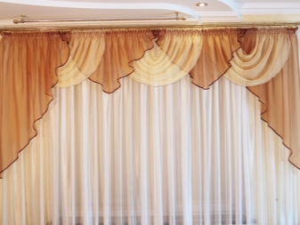 في السنوات الأخيرة ، اكتسب التشذيب على طول حافة اللمبريكين شعبية. الألوان الكلاسيكية مناسبة كألوان نهائية: أبيض ، ذهبي. عند اختيار اللون النهائي ، يمكنك ارتكاب خطأ عن غير قصد وسيتم تدمير الانطباع الكامل للغرفة في اللحظة التي ينتبه فيها المشاهد إلى الجزء العلوي من الستائر..