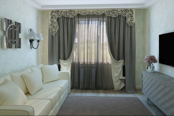 - اختيار لامبريكين في الصالة أو غرفة المعيشة يجب أن نتذكر أن هذه الغرفة هي “مرآة” المنزل. سيقيم الضيوف منزلك بناءً على الديكور في تلك الغرفة. لذلك ، فإن التصميمات الخيالية المعقدة لامبريكين مناسبة لتزيين النوافذ. إنه لأمر جيد أن يتم الجمع بين الخيارات الصلبة والناعمة: فهذا يوفر المزيد من خيارات التصميم..