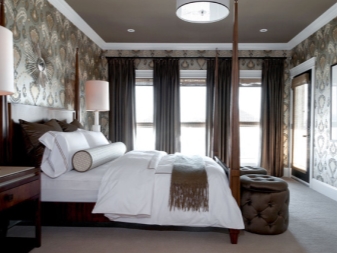 الأقمشة ذات الظلال البنية مناسبة في غرفة النوم كالستائر الليلية التي تحمي من الضوء. ستمنحك النغمات الدافئة الراحة ، وستجلب النغمات الباردة السلام. ستضيف الستائر ذات اللون البني الداكن مع اللمبريكين لمسة إلى غرفة ذات سقف أبيض وورق حائط فاتح..