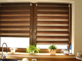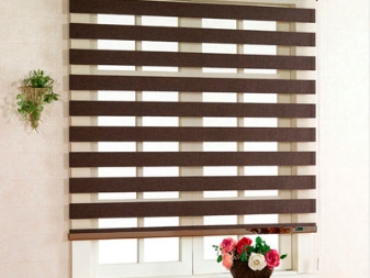 نوع آخر منها هو الستائر الدوارة “نهارا ونهارا” بظل الشوكولاتة. بمساعدتهم ، يمكنك ضبط تدفق الضوء وتوفير مساحة على حافة النافذة..