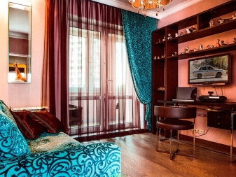 - ستائر قماشية مفردة ومتعددة الطبقات من مختلف الألوان والظلال وكثافة المواد. مع المزيج الصحيح من الألوان ، يكون هذا الشكل مناسبًا لجميع الغرف تقريبًا ؛