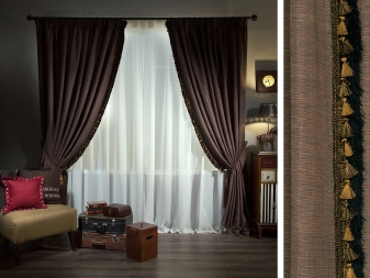 للإجابة على هذا السؤال ، يجب الانتباه إلى ميزات اللون البني والموقع وشكل الستائر وموادها. لقد نظرنا في النقطتين الأوليين أعلاه ، لذلك سننتبه للآخرين..