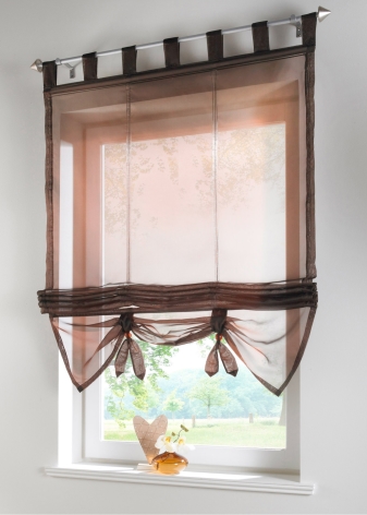 هذا قماش بني غامق أو فاتح اللون مع آلية رفع. عند كرة لولبية ، تنحني المادة وتثني. على عكس المظهر الكلاسيكي ، تتلاءم الستائر الرومانية بإحكام مع زجاج النافذة ، لذا يتم استخدامها في المساحات الصغيرة..