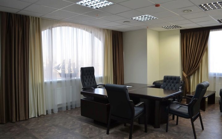 الستائر البنية مناسبة أيضًا لجميع أنواع المكاتب. يؤكدون على جو العمل الصارم لمثل هذه الغرفة..
