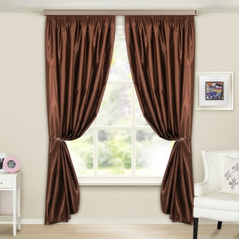 - الساتان والحرير – الأقمشة الطبيعية ، متقلبة من حيث الرعاية ، ولكنها تعطي مظهرًا غنيًا للستائر البنية ؛