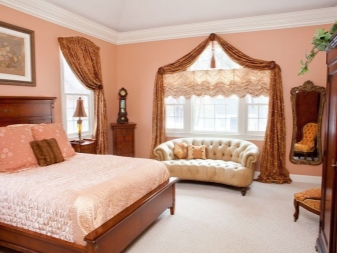 - الستائر القصيرة مع lambrequin جيدة بشكل مدهش لغرفة نوم كلاسيكية.