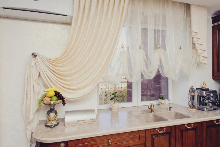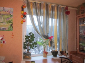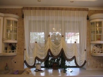 في بعض الحالات ، يكون هذا هو الخيار الوحيد الممكن ، كما هو الحال ، على سبيل المثال ، في المطبخ ، حيث يشغل الجدار مع النافذة سطح عمل مجموعة المطبخ. الستائر القصيرة الأنيقة عملية ، بينما تبدو ساحرة ، تضفي لمسة معينة على الداخل. ومع ذلك ، لا يمكن للستائر على حافة النافذة تزيين المطبخ فقط. غالبًا ما يتم استخدامها في تصميمات متعددة الطبقات ، كاملة بستائر طويلة..