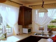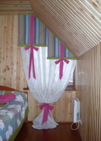 في كثير من الأحيان ، تزين الستائر الصغيرة النوافذ الريفية خارج المدينة. لتصنيع مثل هذه الستائر يتطلب نسيج مقاوم للرطوبة. هذا يمكن أن يمنح الغرفة الحماية اللازمة من سوء الأحوال الجوية..