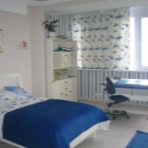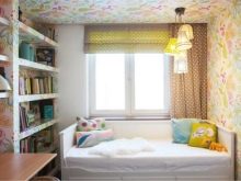 - كل شيء مدروس في غرفة المراهقين هذه. تلعب عتبة النافذة دور مكتب الكتابة ، لذا فإن الستائر القصيرة فقط مناسبة هنا. يعمل الجدار بالكامل مع النافذة ككل. في مساحة صغيرة من الغرفة ، يتم استخدام كل سنتيمتر.