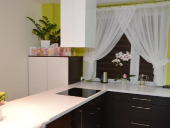 دائمًا ما يكون استخدام ستارة قصيرة في مساحة المطبخ مناسبًا. في هذه الحالة ، يتم اختيار نظام الألوان وفقًا لعوامل مختلفة..
