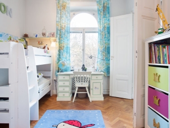 من الصحيح والعملي استخدام الستائر القصيرة في الحضانة. ستبدو لوحات التول الشفافة القصيرة ذات الطباعة المبهجة رائعة هنا ، على سبيل المثال ، رسومات الحيوانات ، وشخصيات القصص الخيالية.