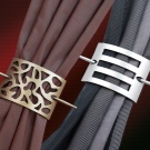 تم تصميم المشابك لتثبيت نصفي الستارة معًا في وسط النافذة. لا يتم استخدامها للتعليق من الكورنيش ، ولكن غالبًا ما يتم استخدامها كمقابض ؛