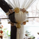 - تبدو الحوامل جذابة للغاية من القماش. تبدو هذه العناصر الزخرفية جميلة جدًا ومتنوعة ، فهي أزهار وشرابات وأقواس وشرائط. يتم استخدامها للستائر الدوارة وكذلك الموديلات الكلاسيكية. تبدو تركيبة الزهور مشرقة جدًا ، وهو ما يتناقض مع قماش الستارة..