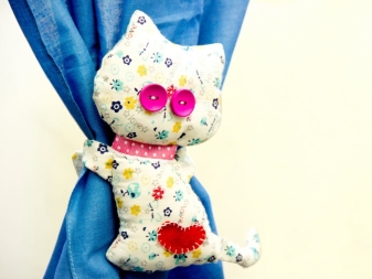 لتصميم الستائر في غرفة الأطفال ، يتم اختيار المقاطع على شكل شخصيات خرافية أو حيوانات لطيفة. في المطبخ ، تكون التركيبات على شكل فواكه وخضروات مناسبة. سيتم تزيين الجزء الداخلي الرائع بستارة متطابقة مع مشبك بمجموعة متنوعة من الأحجار.
