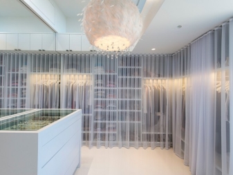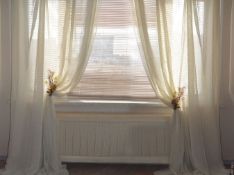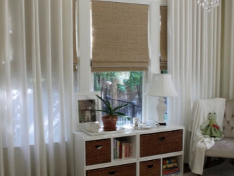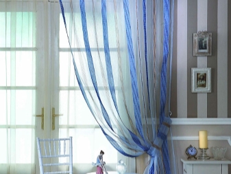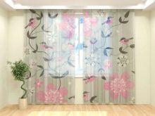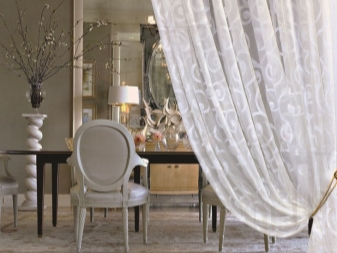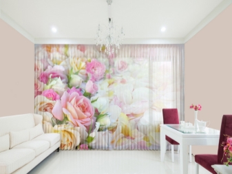 لتنعيم المساحات الداخلية المشرقة والغنية ، تحتاج إلى استخدام ستائر تول فاتحة. يمكن أن تكون هذه ظلال من اللون البيج والأبيض والوردي. يمكن تزيين المنتج بأنماط أو زخارف سرية لإضفاء نكهة على الستائر الخفيفة. في السنوات الأخيرة ، بدأت الستائر ذات الخطوط أو الزهور الكبيرة في الجزء السفلي من القماش تتلاشى..