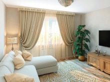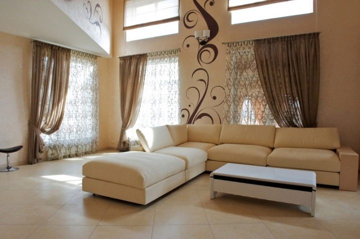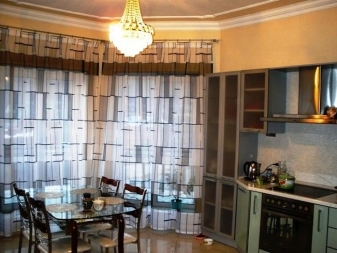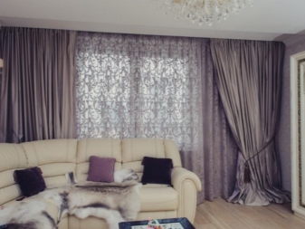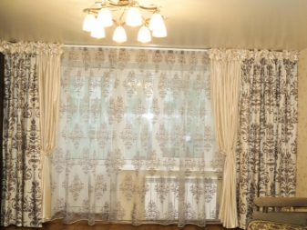 الآن في الموضة هي ستائر شبكية خفيفة معلقة فوق ستائر ثقيلة.. من المهم أن يتم الاحتفاظ بجميع العناصر في نفس نظام الألوان ، وأن تختلف فقط بدرجة أو نغمتين. في هذه الحالة ، يمكن أن يكون طول اللوحات مثل الوصول إلى الأرض أو الاستلقاء قليلاً على الأرض..