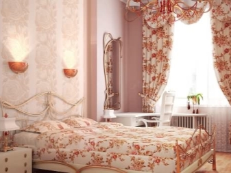 في غرفة النوم ، لا يمكنك استخدام ورق الحائط والستائر الساطعة للغاية. من الأفضل التقاط تول الظل الموجود في نمط ورق الحائط.. وبالتالي ، يمكنك الحصول على غرفة شاملة ومتناغمة..