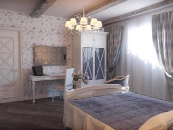 إذا كانت الغرفة مزينة بأسلوب بروفانس ، فسيتم استكمالها بشبكة تول فرنسية.