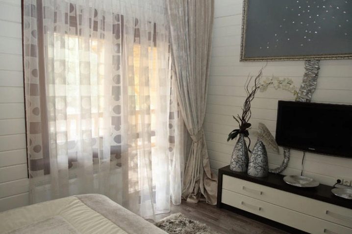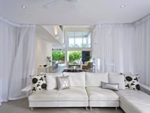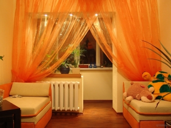 - وبالتالي, لغرفة المعيشة الألوان المشبعة والأنماط المعقدة مناسبة ، بينما من الأفضل لغرفة النوم اختيار الأقمشة بألوان السرير. يعتبر الحجاب أو الغاز مثاليًا لغرفة النوم ، ولكن يمكن استخدام الأورجانزا بحذر شديد وبالاقتران مع الستائر الثقيلة فقط..