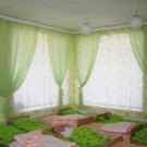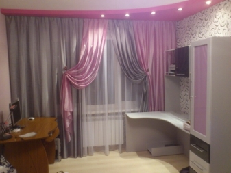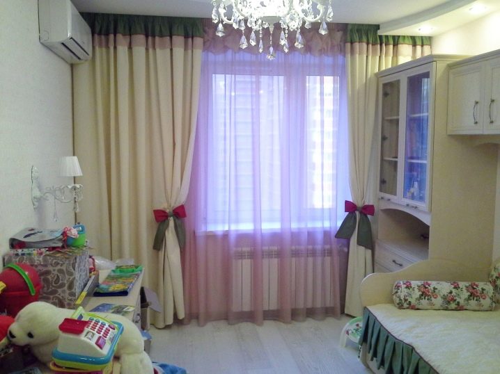 - الى غرفة الاطفال تحتاج إلى اختيار مواد صديقة للبيئة يجب أن تتمتع بمقاومة التآكل والقدرة على الحفاظ على الشكل. من الضروري أن تسمح هذه الستائر بمرور الضوء والهواء ، ولكن لا تجمع الغبار. لذلك ، يجب تعليق الستائر المصنوعة من الأورجانزا أو الشبك مع إضافة ألياف القطن على نافذة غرفة الأطفال..
