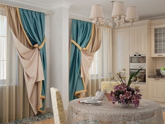 ولكن بالنسبة للكلاسيكيات ، سيكون التول مع لامبريكين هو الحل الأمثل. يمكن أن يكون لها مجموعة متنوعة من الأشكال: موجات ، أنصاف دائرة ، طيات ، طيات ، إلخ. الشيء الرئيسي الذي يجب مراعاته هو أنه إذا كانت المساحة كبيرة ، فيمكن أن يحتوي اللمبريكين على عدة عناصر معقدة.