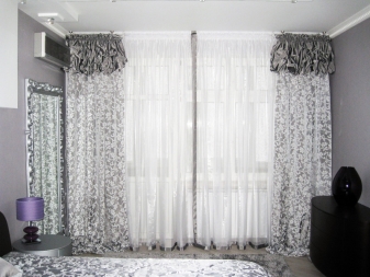 ينصح المصممون باستخدام الستائر المعقدة في تصميم النوافذ في غرفة النوم.. هذا ضروري حتى تتمكن من تعتيم الغرفة في أي وقت. يمكن اعتبار مثال على الإيجاز والبساطة تول أبيض مع ستائر داكنة كثيفة..