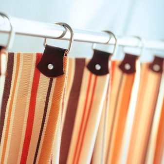 للأقمشة الكثيفة ذات الطيات الكثيفة ، يتم استخدام الحلقات والثقوب ، والتي تُخيط في الحافة العلوية للستارة. طريقة التثبيت هذه مناسبة فقط إذا كنت تستخدم قضيب ستارة. يسمح لك عدد متساوٍ من الثقوب بإنشاء ستائر كثيفة مع الكثير من الطيات. الحلقات والحلقات متوفرة بشكل شفاف ، ملون ، يشبه المعدن. يُنصح باختيارها وفقًا للون الكورنيش..