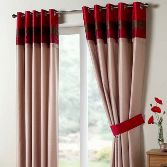 استخدم شريط الستارة لحماية الحافة العلوية من القماش.. توجد أحزمة ثقيلة خاصة لتسهيل العمل مع الأقمشة الرقيقة. ومع ذلك ، فإن هذه الطريقة بعيدة كل البعد عن كونها عالمية – فهي غير مناسبة للأقمشة الشفافة وخفيفة الوزن. يمكنك أيضًا تعليق الستائر على حلقات مُخيطة خصيصًا من القماش الذي يتناسب مع مادة الستائر ، أو من الأقمشة من نوع مختلف وظل. من المريح تعليق الستائر بحلقات ، ودفعها بعيدًا عن بعضها البعض ودفعها للداخل دون خوف من إتلاف القماش ، لكن هذه الطريقة تتطلب قضيب ستارة على شكل قضيب. من ناحية أخرى ، يتم قطع الحلقات بدقة وتزيينها بأزرار أو أقواس لإطلالة مبهجة..