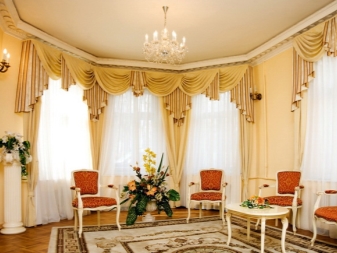 توجد أغنى الاحتمالات لتصميم الستائر في القاعة أو في غرفة المعيشة ، حيث تكون النوافذ واسعة بما يكفي لاستيعاب ليس فقط الستائر الكلاسيكية ، ولكن أيضًا لامبريكين مقطوع بشكل غير عادي وشلالات وأكاليل. من المفيد هنا الجمع بين الأقمشة الثقيلة والخفيفة ، وتحقيق تأثير الآثار أو ، على العكس من ذلك ، التهوية والديناميكية. في غرفة النوم ، يجب تعليق ستائر معتمة تخفت ضوء مصابيح الشوارع في الليل وتحميها من الضوء الساطع في الصباح. في غرفة صغيرة ، يمكن استبدال الستائر بالستائر الرومانية أو الستائر الدوارة ، والتي تؤدي نفس الوظيفة بنجاح دون أن تشغل مساحة كبيرة.. ستائر الدانتيل أو التول ستحمي الغرفة من أعين المتطفلين دون تظليلها.