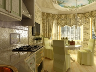 في المطبخ ، يجب قطع الستائر من قماش يمكن غسله بشكل متكرر ، لذا فإن الأقمشة الطبيعية الرقيقة ليست هي الخيار الأفضل.. الأقمشة الاصطناعية خفيفة الوزن التي لا تتطلب كي مناسبة لنوافذ المطبخ. توجد اقمشة مشربة بمركب خاص يمنع الحريق وهو امر مهم جدا في المطبخ. يتم اختيار طول ستائر المطبخ اعتمادًا على حجم الغرفة ، ولكن الخيار الأكثر شيوعًا هو ستارة خفيفة مع طيات قليلة على عتبة النافذة أو إلى المبرد ، والتي يتم تثبيتها على الجانبين بحوامل مغناطيسية. نظرًا لأن المطبخ يتم تهويته غالبًا ، فلا داعي لتعليق التل هنا ، مما يعيق تبادل الهواء..