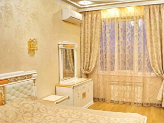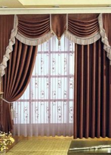 تتكون النسخة الكلاسيكية من الأقمشة ذات الطراز الفرنسي من 3 طبقات على الأقل – ستارة من الدانتيل الخفيف أو التول ، مجمعة في طيات رشيقة ، وستائر سميكة على الجانبين ولامبريكين مزخرف بشكل غني. إذا لم يكن هناك ما يكفي من الضوء الطبيعي أو تم فتح منظر خلاب من النافذة ، فيمكنك الاستغناء عن الستائر. حاليًا ، تحظى أنواع مختلفة من الستائر بشعبية – الباروك الخصب ، الإيطالي المتطور ، النمساوي المريح ، الروماني المقتضب ، الياباني البسيط. يتم تحديد اختيار الأسلوب من خلال الغرض وميزات التصميم للغرفة.