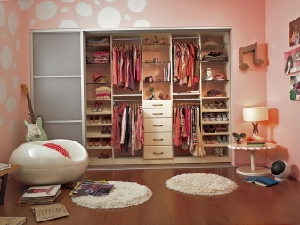 خزانة الملابس ستجعل حلم الفتاة المراهقة حقيقة. من الضروري تثبيت إضاءة موضعية فيه حتى تتمكن الشابة من ارتداء ملابسها بشكل مريح..
