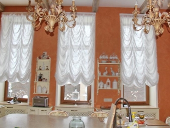 - غالبًا ما تزين المطابخ بستائر فرنسية مصنوعة من الأورجانزا الخفيفة.. إنهم لا يثقلون أجواء الغرفة وفي نفس الوقت يضيفون دائمًا لمسة من النعمة إليها. حتى أن البعض يزين الشرفات بمثل هذه الستائر. يبدو جيدًا إذا كان الإعداد متطابقًا.