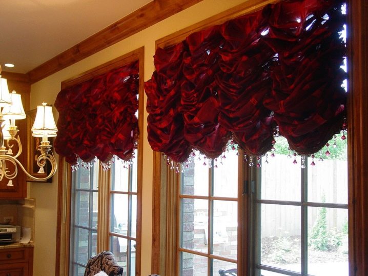 إذا اخترت هذا النوع من الستائر ، على سبيل المثال ، لشرفة صيفية مغلقة ، لكن النوافذ غالبًا ما تكون مفتوحة, يمكن خياطة الأوزان الزخرفية على الستائر, بفضل ذلك لن ترتفع الستائر وتطير في كل الاتجاهات.