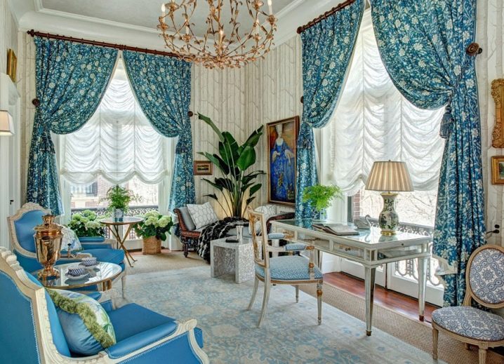 - التأكيد على التكلفة العالية للديكور الداخلي وإضافة الروعة إلى غرفة المعيشة يمكنك بسهولة استخدام الستائر الفرنسية الفاخرة خاصة إذا كانت مطرزة. وستكون الستائر واللمبريكين إضافة رائعة لهم. بمساعدة هذه الستائر ، يمكنك إجراء تباين خاص في الغرفة ، مما سيسعد ليس فقط جميع الأسر ، ولكن أيضًا الضيوف. أيضا ، سوف تتناسب هذه الستائر بشكل مثالي مع النوافذ الكبيرة..