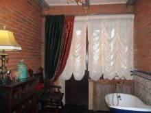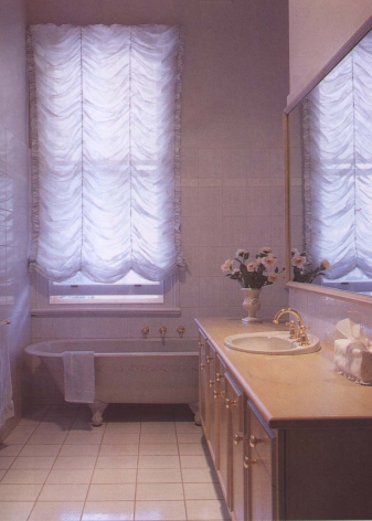 - أيضًا ، في كثير من الأحيان ، بمساعدة هذه الستائر ، يزينون الحمامات. بمساعدتهم ، يمكنك إخفاء كل شيء غير ضروري عن أعين المتطفلين وفي نفس الوقت جعل الغرفة أكثر راحة وهدوءًا..