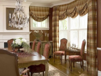 تحظى الستائر الإنجليزية أيضًا بشعبية كبيرة ، والتي تختلف من حيث أنها تشغل مساحة صغيرة جدًا. عادة لا تكون هذه اللوحات ضخمة جدًا مصنوعة من مادة رقيقة وليست رقيقة جدًا ، وهذا ينطبق على كل من التول والستائر. كقاعدة عامة ، يتم اختيار التول في ظل أكثر إشراقًا ، والستائر نفسها معلقة بشكل أفتح ، ولكن مع أنماط مثيرة للاهتمام..