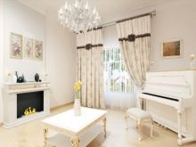 إذا قررت تزيين غرفة بأسلوب كلاسيكي ، فمن الأفضل إعطاء الأفضلية للأقمشة الكثيفة إلى حد ما للستائر والتول ، وعادة ما تكون هذه المنتجات مزينة بلمبريكين ، وكذلك الديكور مثل الحبال والمشابك. كقاعدة عامة ، في هذه الحالة ، يتم التركيز عليها..