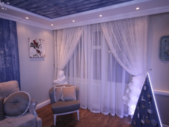 إذا قمت بتعليق ستائر جميلة مصنوعة من مادة باهظة الثمن ، فأنت بحاجة إلى اختيار تول خفيف وبسيط في المجموعة لها ، فمن الأفضل أن تكون مصنوعة من الشيفون أو الأورجانزا..