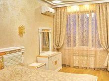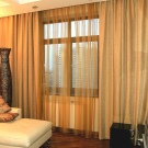 إذا كان طولها من 150 إلى 200 سم ، فيجب أن يكون عرض الستائر والستائر مساوياً لـ 1.5 من طولها ، وحجم الكورنيش 280 سم ، والعرض سيكون بطولان ، بحجم 340 سم – 2.5 طولاً.. في حال احتجت إلى اختيار ستارة جاهزة بالعرض ، فمن الأفضل شراء موديل بعرض ستارة بطول 2.