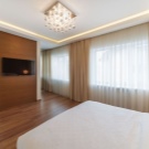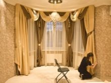 يتميز تصميم الستائر في شقة عادية بتصميم مقيد ومتناسق ، فضلاً عن حقيقة أن كل زخرفة النافذة عبارة عن مجموعة واحدة. كقاعدة عامة ، تشكل الستائر والتول والأثاث مزيجًا متناغمًا ، لكن زخرفة النافذة تختلف في اللون والتصميم عن باقي الأجزاء الداخلية للغرفة ، وإلا فسيتم دمج التصميم بالكامل. تبدو خيوط الستائر في الداخل مثيرة للغاية ومقيدة. إنها متعددة الاستخدامات وسوف تتناسب مع التصميم الداخلي النموذجي للغرفة..