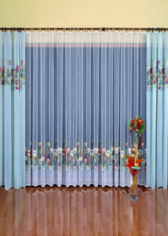 كقاعدة عامة ، لا يتم استخدام هذه المادة في شكلها النقي لصناعة الستائر ، بل يتم استخدامها عن طريق نسجها في أقمشة من القطن والكتان وحتى أقمشة أكثر صرامة.. في هذه الحالة ، يمكنك التقاط تول غير طبيعي سيكون له القليل من اللمعان.. ستبدو هذه المجموعة متناغمة تمامًا ، على الرغم من عدم تطابق الأقمشة.