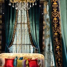 هناك بعض القواعد للجمع بين الأقمشة الفردية. لا ينبغي أبدًا دمج المواد المخملية والساتانية مع الكتان الخشن والأقمشة الأخرى ذات الملمس الخشن.. يجب استكمال التول الرقيق من الشيفون والمواد المماثلة بستائر أثقل وسمكًا مصنوعة من التفتا أو الساتان. في هذه الحالة ، لا يجب عليك شراء نماذج الكتان أيضًا ، فهي ستبدو غير متناغمة مع الشيفون..