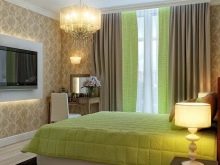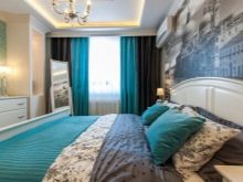 عادةً ما يتم الحصول عليها بلون ورق الحائط ، علاوة على ذلك ، غالبًا ما تكون الستائر والتول أكثر إشراقًا قليلاً من الجدران ، ولكنها بنفس نظام الألوان..