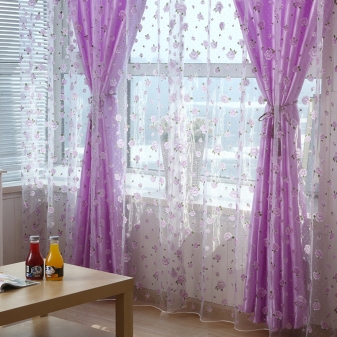 أيضًا ، للحصول على تصميم داخلي بسيط ، يجب عليك شراء التول من الأقمشة الخفيفة الوزن ، مثل الشيفون ، والتي ستكمل تمامًا نفس الستائر الخفيفة..